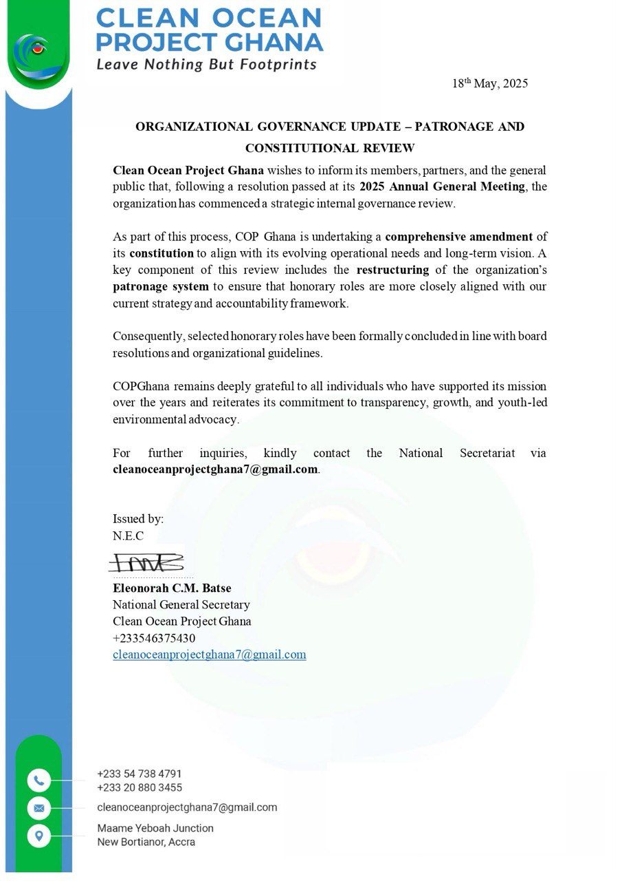 Partnering with Clean Ocean Project Ghana means joining a passionate community dedicated to environmental change. By collaborating with us, you align your organization with impactful initiatives that combat ocean pollution, promote environmental education, and drive innovative solutions. Benefit from our expertise, strong community relationships, and transparent approach. Together, we can create a cleaner, healthier world, fostering sustainable practices and leaving a lasting legacy of environmental stewardship. Join us in making a significant difference in our ocean and communities.